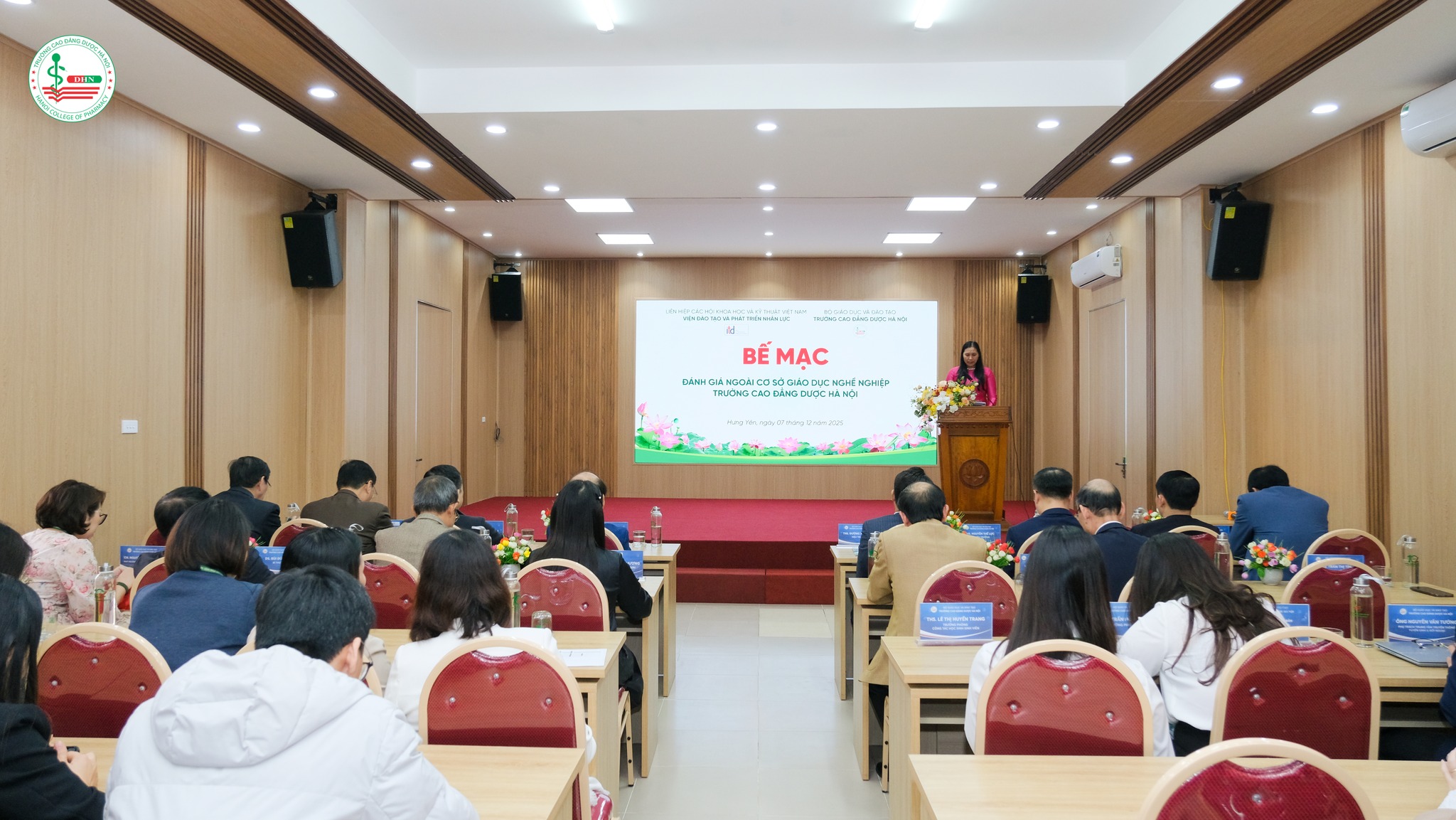 Ngày 07/12/2025, sau một tuần làm việc nghiêm túc, khoa học và hiệu quả, lễ bế mạc đợt Đánh giá ngoài cơ sở giáo dục nghề nghiệp tại Trường Cao đẳng Dược Hà Nội đã diễn ra trong không khí trang trọng. Chương trình do Viện Đào tạo & Phát triển Nhân lực phối hợp cùng Nhà trường tổ chức.