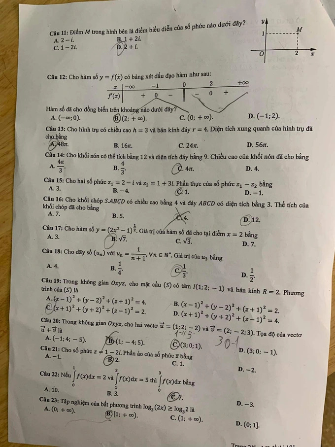Đáp án môn toán thi tốt nghiệp THPT 2023 - mã đề 111