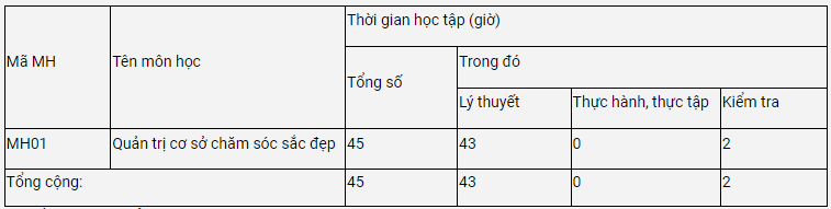 - Tên nghề: Cập nhật kiến thức Quản trị cơ sở chăm sóc sắc đẹp