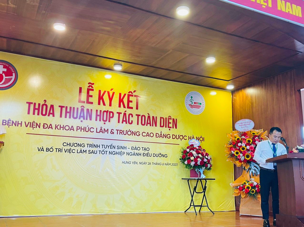 Ảnh: Lễ ký kết hợp tác của Trường Cao đẳng Dược Hà Nội với bệnh viện đa khoa Phúc Lâm (Nguồn: Trung tâm truyền thông và kết nối doanh nghiệp)