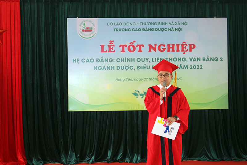 Tại buổi Lễ tốt nghiệp, Thầy Đường Xuân Tùng - Hiệu trưởng cũng gửi lời cảm ơn các em tân cử nhân đã chọn nhà trường để là nơi học tập và tu dưỡng ba năm qua và chúc các em tân Dược sĩ, Điều dưỡng, Hộ sinh có nhiều sức khỏe, đạt được nhiều thành công trong cuộc sống. Thầy Hiệu trưởng cũng gửi thông điệp mong muốn các em sẽ là những đại sứ của Nhà trường để lan tỏa những thông điệp tốt từ Trường cao đẳng Dược Hà Nội tới cộng đồng và xã hội.