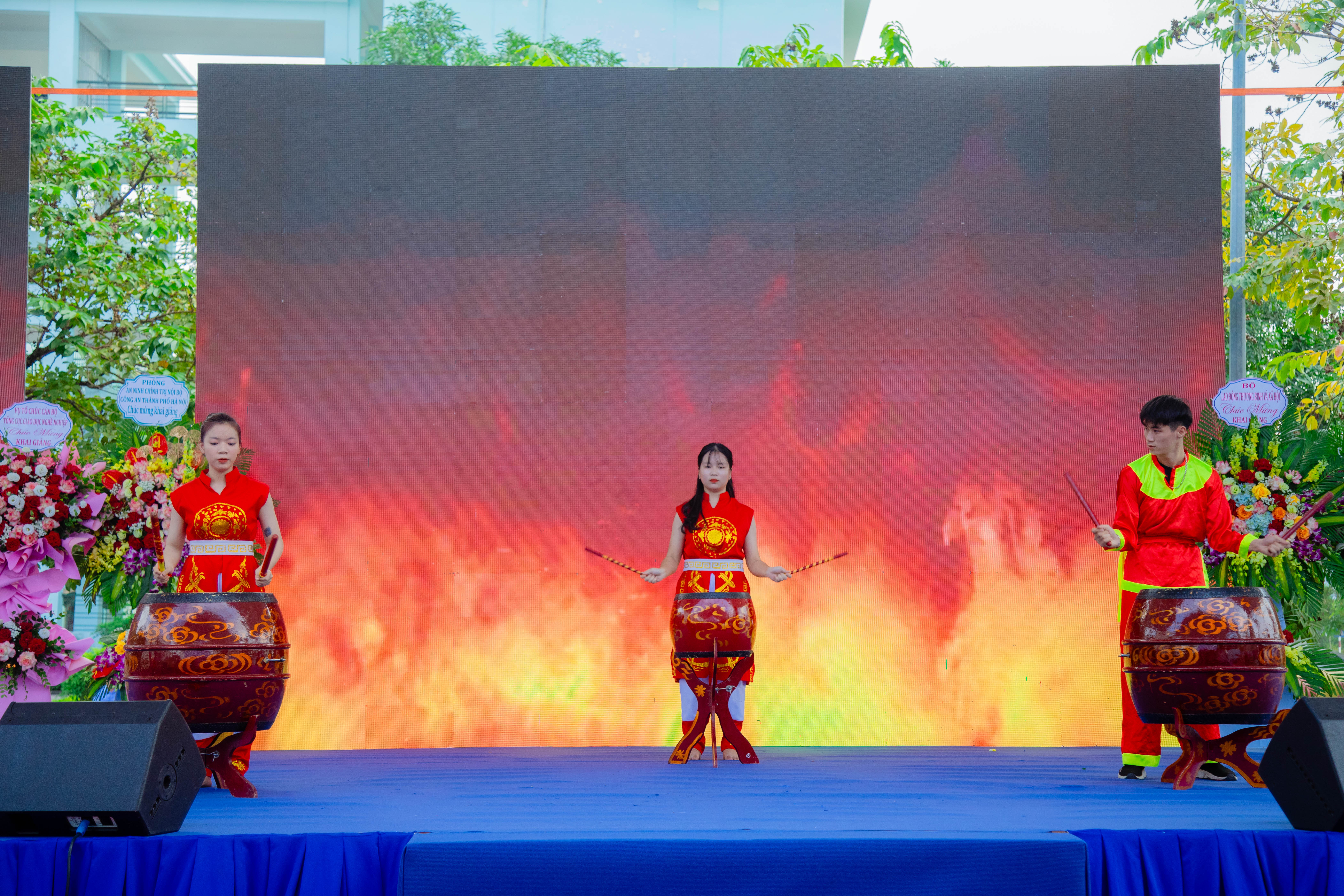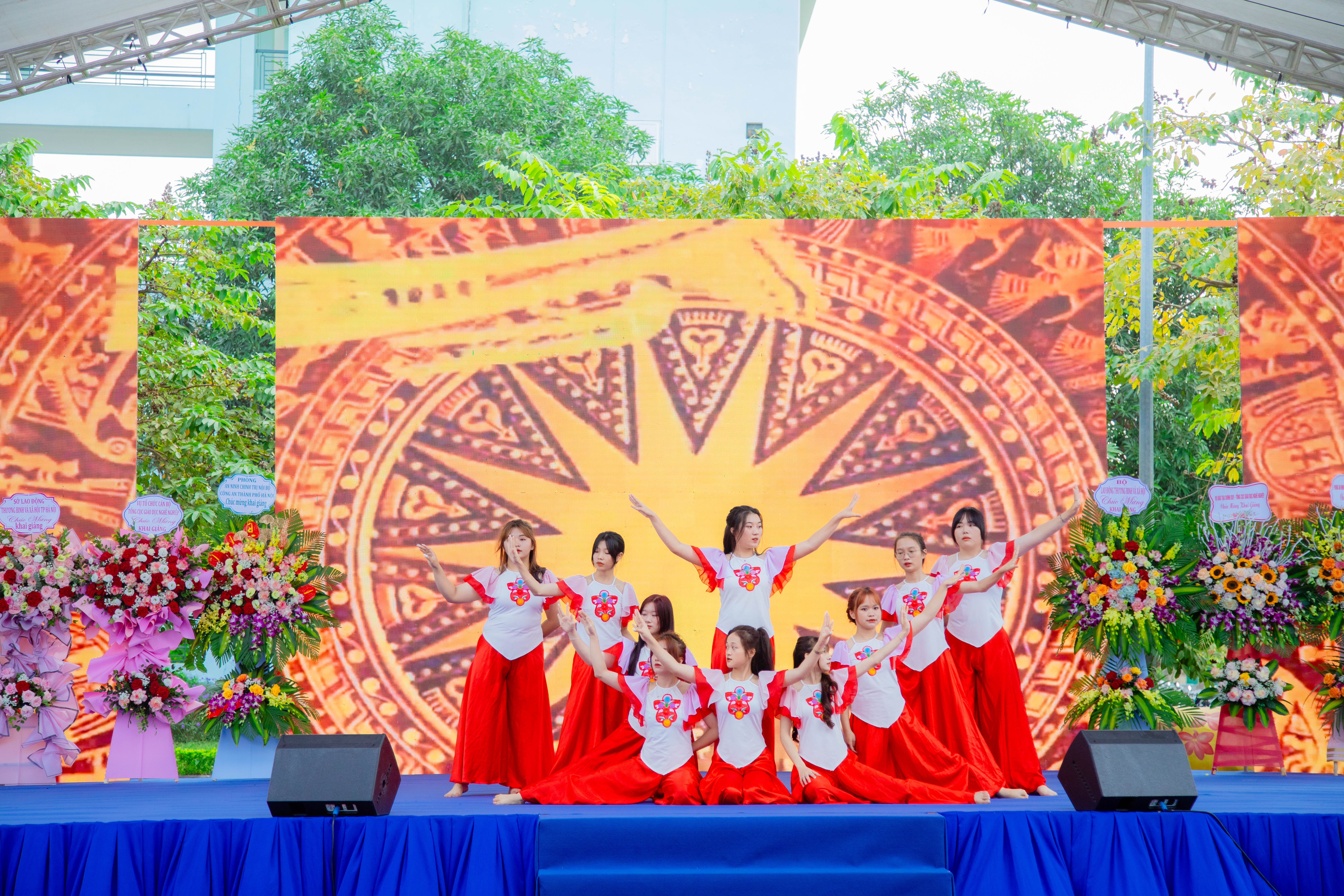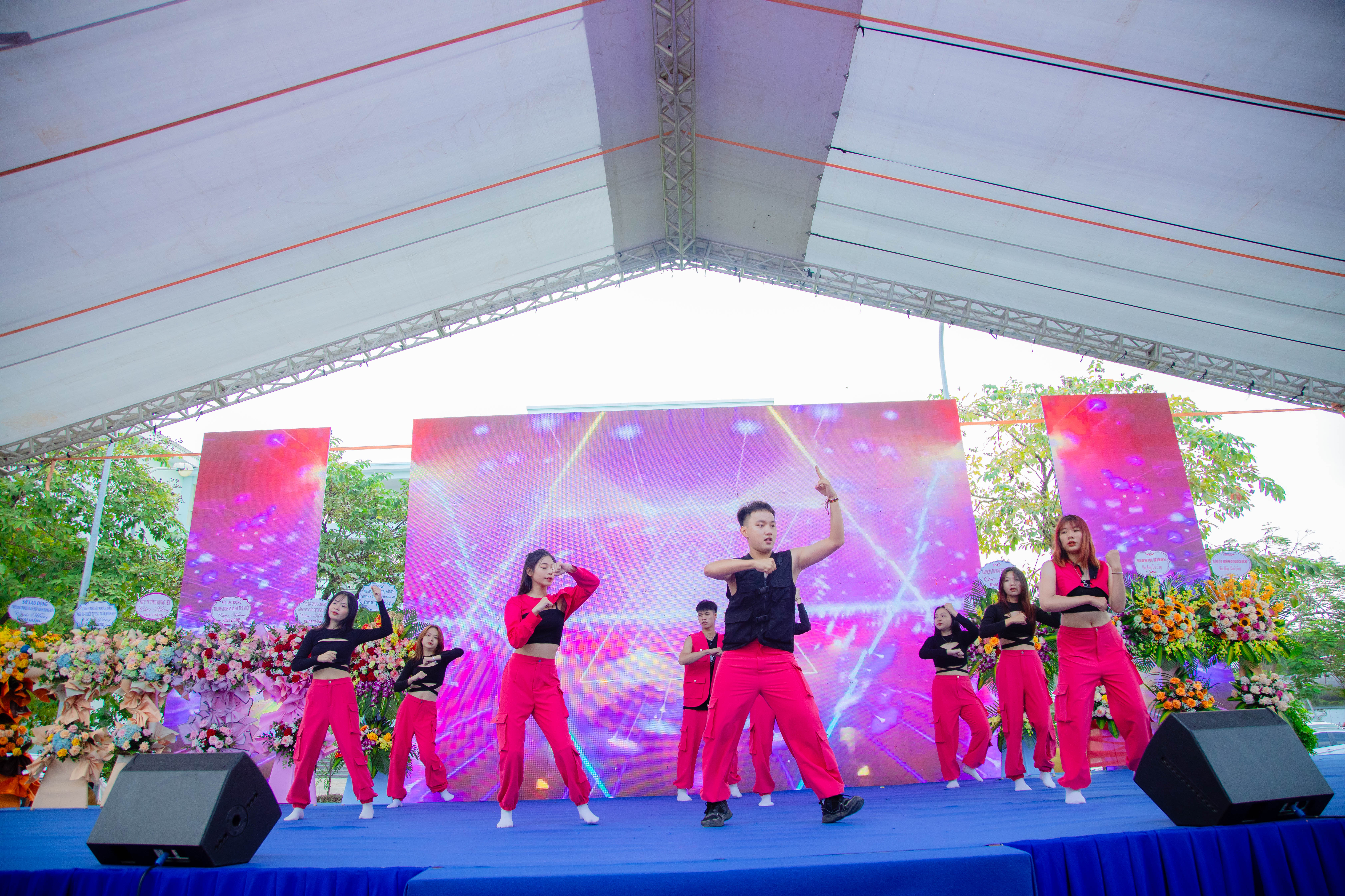 Ảnh: Các tiết mục văn nghệ đặc sắc do sinh viên Nhà trường biểu diễn góp phần cho buổi lễ khai giảng thêm hoành tráng.