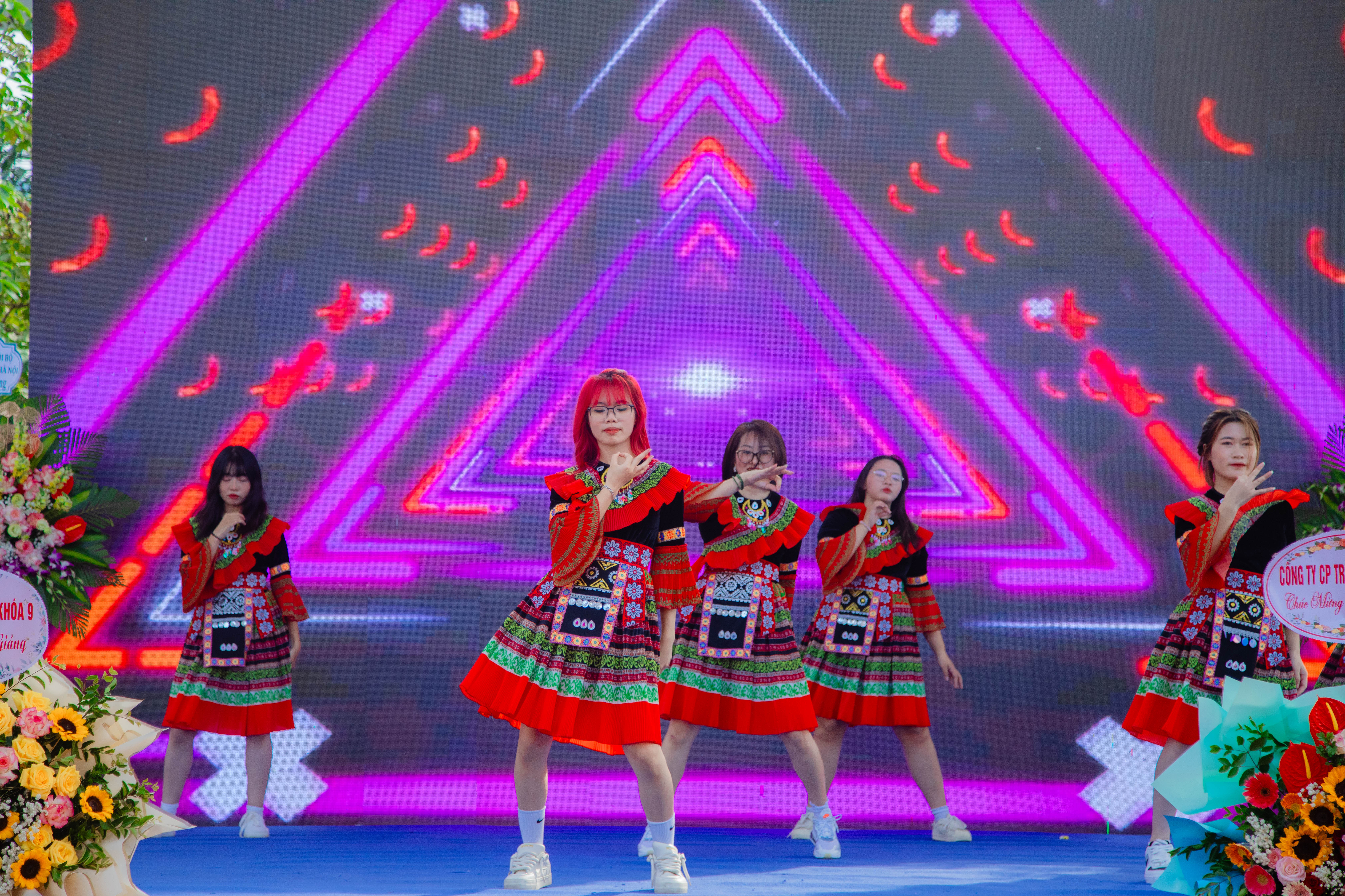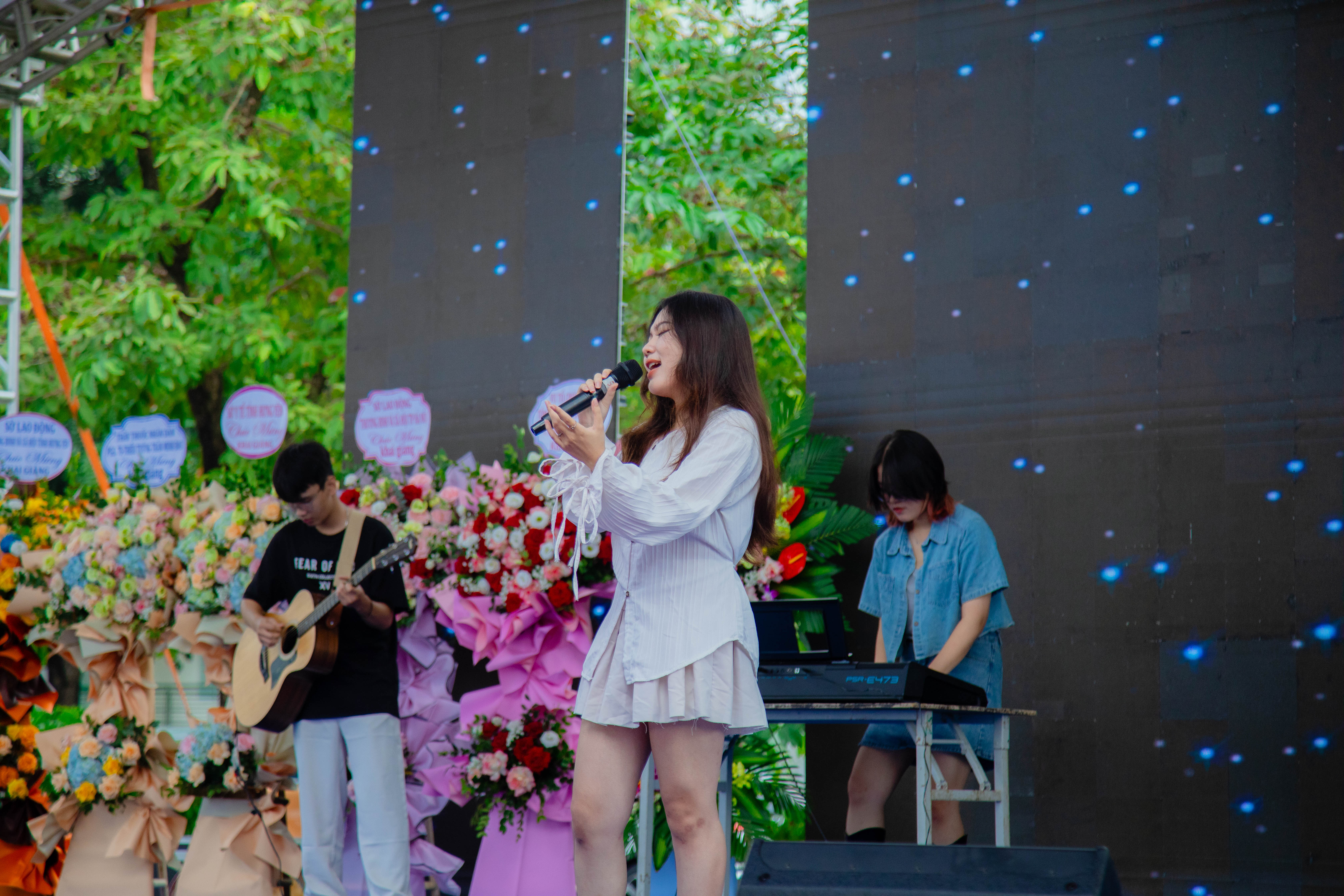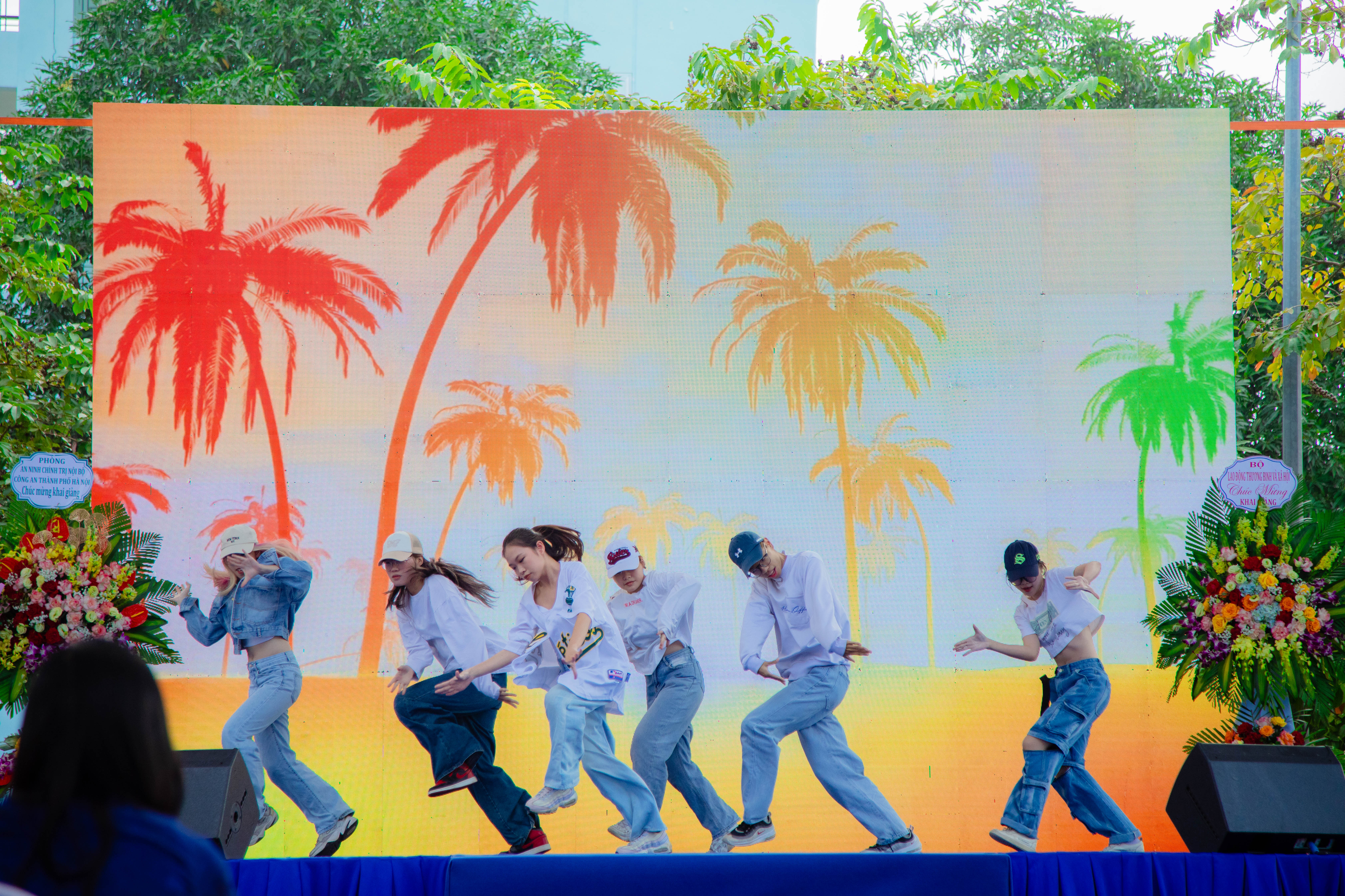 Ảnh: Các tiết mục văn nghệ đặc sắc do sinh viên Nhà trường biểu diễn góp phần cho buổi lễ khai giảng thêm hoành tráng.